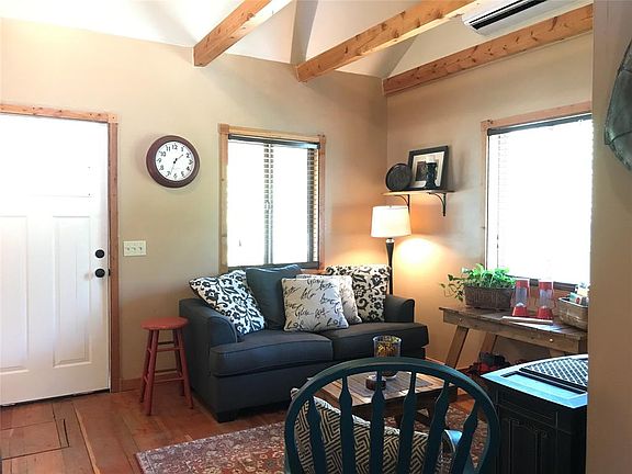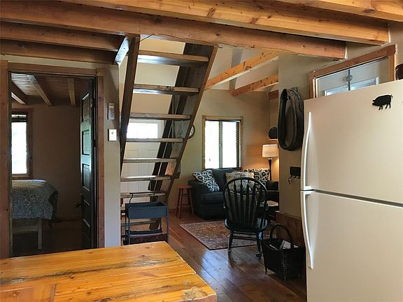 This quaint one bedroom cabin with loft is just over the hill from Red Lodge. It would make great 2nd getaway or a starter home. The living room has propane gas burning stove and features beam architecture. There are pine floors, pine cabinets, a clawfoot tub in the bath, a covered front porch made for sittin' and a covered back porch as well, plus there is a skylight in loft. Bearcreek is famous for it's Pig Races. Furnishings negotiable.THERE IS A AC UNIT!! YAY. Propane Gas is about $700 annually with the tank rental of 45 annually. The home is currently used as a second home.