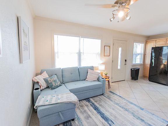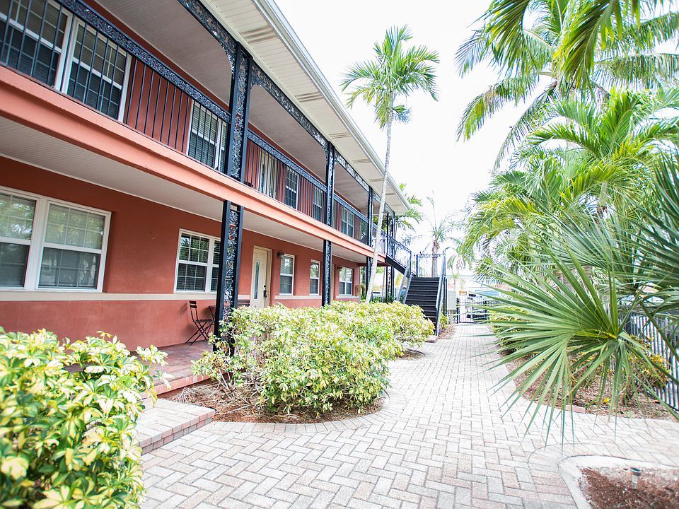 Your own piece of paradise, one block from Upham Beach with a pool! This is a 1st floor - 1 bedroom/1 bath apartment with a patio! 9-Unit apartment complex located just a block away from Upham Beach Park! Blue Skies is a small, quiet apartment complex with 9 units total. This unit has tile floors throughout, and granite countertops in the kitchen and bath. Kitchen has lots of cabinets for plenty of storage as well as full size appliances including microwave and dishwasher. Unit has big windows to allow for tons of natural light, central heat and air, corner unit and coin laundry facility on site. Pool has lots of seating, mature palm trees that provide great shade and has a BBQ grill Rent includes water/sewer/trash, landscaping, pool access AND one reserved off street parking spot. Pets negotiable. Renter's Insurance required. 600+ Credit, No delinquent tenant or eviction. Proof of Income 2.5x rent. Utilities included: garbage, water & internet . No smoking. Cleaning Fee - $150.00 Utilities included: garbage, water & internet . No smoking. Cleaning Fee - $150.00
