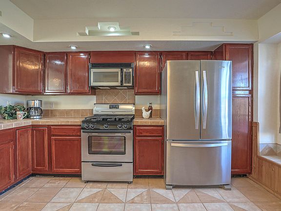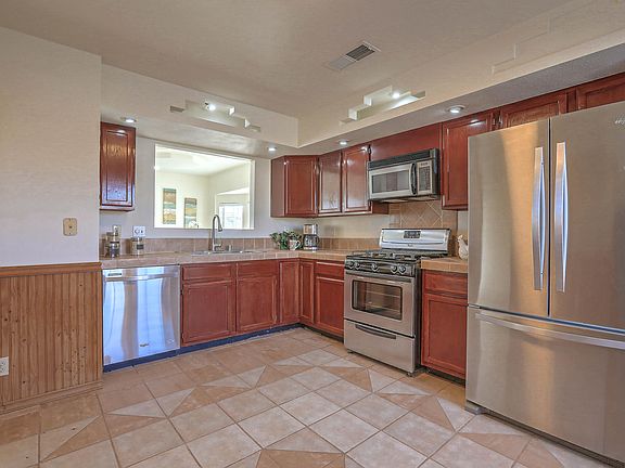 Vista Hills cutie! Incredibly charming and brighter than a ray of sunshine. This home sits on a massive .31 acre lot and features spectacular mountain views. The interior details include coffered ceilings, eat-in kitchen with stainless steel appliances, and a cozy eye-catching wood burning fireplace. Low maintenance tile and laminate wood floors throughout the home. Magnificent natural lighting. Water heater was replaced in 2021. Evaporative cooler was replaced in 2022. No poly. Outdoor shed with electricity. Carport/covered patio. Backyard access. Close to shopping, dining, and many other amenities. This is the one!
