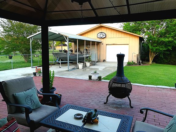 Manicured yard front and exterior, four sided brick, hard wood flooring, tile baths, three bedroom one and 1/2 bath, with a den and kitchen. Patio is a must see. Two car detached garage and a storm shelter. Roof seven years old