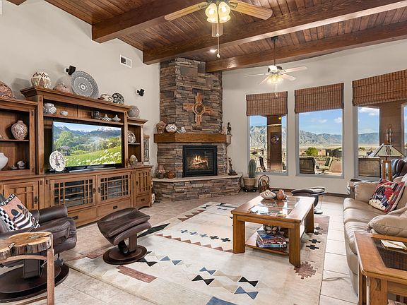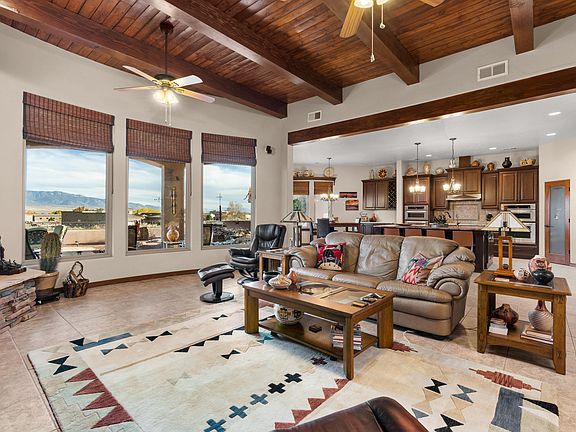 Majestic Custom Tuscan style home with over 3500 square feet, featuring an open & bright floorplan & thoughtful architectural & design details throughout! Grand foyer leads to stunning great room boasting a raised, beamed ceiling; floor to ceiling 'stack' stone fireplace; picture windows to enjoy the Sandia Mtn views; & surround sound extending out to covered patio. Gourmet kitchen graced w/beautiful cabinets & granite cntrs; high end SS appliances w/dbl ovens & 2 microwaves; oversized eat-at island; large pantry & sunny nook. Exquisite custom etched glass doors open o the formal dining room! Privately situated primary suite is a true retreat with its own east facing patio & spa like en suite. 1 Acre Lot adjacent to the East of subject property-available to purchase, terms to be determined