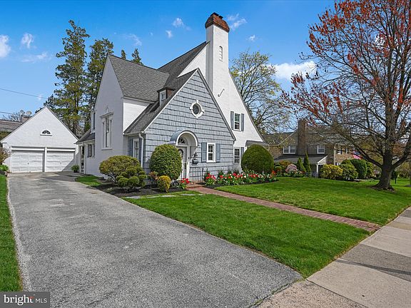 Lovingly maintained and meticulously updated over the years, this distinctive Tudor-style home in the coveted "Drexel Park" neighborhood awaits its new owner. Boasting architectural features that exude old world charm paired with modern updates (think arched doorways, deep window sills and custom built-ins), this home has the space and amenities for today's buyer, while its timeless features have been carefully preserved. A brick walkway leads to the arched front door into a slate floored vestibule with oversized coat closet and spacious powder room. Step into the foyer boasting a beautiful L-shaped staircase, flanked by a 21x14 living room offering space for all to gather. The fireplace has been converted to gas and offers the perfect focal point to this space. Recessed lighting has been added to this room that also has a ceiling fan, hardwood flooring and a French door to one of your many outdoor living spaces- a covered side porch with ceiling fan, that was thoughtfully designed to make it simple to enclose into a 3-season room if you wish. Ceiling fans and recessed lighting have been added to each room in the home, and many rooms have been freshly painted- just a few of the many thoughtful improvements that the owners have made! The hardwood flooring continues into the formal dining room, boasting dual corner cabinets and a long deep windowsill that adds character and utility to this room. There is an informal breakfast nook with original pantry cabinets that connect the kitchen to the dining room. The kitchen is spacious, featuring a center island with seating, an abundance of cabinetry, gas cooktop, stainless steel appliances (Bosch DW replaced- 2021) and a walk-in pantry for additional storage. Closets and storage are abundant in this home; you will never have a shortage of space for your clothing and "overflow" items. Up the stairs to the 2nd level you will find a floor plan that offers you options! There are technically two "main" bedrooms, one on the 2nd level and one that spans the entirety of the 3rd story. The 2nd level offers four large bedrooms, all with hardwood flooring, recessed lighting, ceiling fans and nice sized closets. There is a hall bath that features a shower/bathtub with tasteful subway tile, an updated vanity, tile flooring and custom shelving. The 2nd bath on this level is "Jack & Jill" style, recently renovated with white subway tiled shower, wainscot, and updated sink and mirror combination and is shared by two rooms that are currently being used as the main bedroom and an in-home office. The 3rd level boasts a 2nd "main" bedroom with hardwood flooring, recessed lighting + ceiling fan, a neutral wall color and large en suite tiled bathroom with soaking tub/shower combination and updated vanity. A hallway closet for additional clothing storage as well as two access points to the spacious attic complete this level. There is more! The unfinished walk-out basement with laundry room and recently replaced exterior door offers a blank slate for you to use as you wish- think home gym, craft area or game room! You will be impressed by the tankless combination water heater and heating system with a Bosch Greenstar combi ZWB model gas condensing boiler. All of the horizontal cast iron heating pipes in the basement were removed and replaced with Oxygen Barrier Red and Blue PEX piping. Buy with confidence knowing that these big ticket items have been done for you! This home is situated on a spacious and level lawn, with colorful plantings and several spaces to sit outside, play and entertain, including a covered patio off of the rear of the home that also offers a convenient informal entrance into the kitchen from the driveway, and a patio next to the 2-car detached garage. The location offers convenience to shopping, schools, the SEPTA 101/102 trolley line, and is a short drive to the airport and Center City. You will be proud to pull up to this home and call it your own.