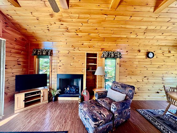 AN EXCEPTIONAL WATERFRONT RETREAT!!! Here awaits your own slice of lakeside living with 52 feet of private shoreline on BACK LAKE including a private dock, unforgettable sunsets & water views. ~FISHING, DIRECT ATV & SNOWMOBILE access are right outside your door.~ This home offers an open concept design with cathedral ceilings and a sun filled cozy great room complete with a fireplace and double sliders that take you to a water view on the expansive deck. The full basement & stand-by generator makes it all worry free! Nothing to do but move in... *With a strong rental history under Lopstick MGMT, this property is equally suited as a year round residence, vacation retreat or investment opportunity.*