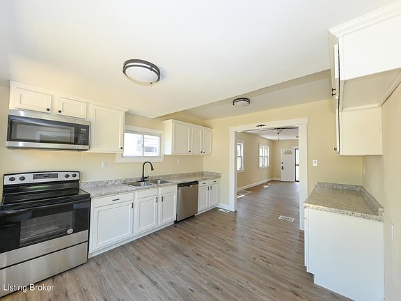 Recently updated. Very nice house with new flooring, kitchen and bath remodel. Fresh paint inside and out. Rebuilt back deck and new French doors open out onto it. A great starter home or possibly a rent ready home for an investor. Just a few blocks from Churchill Downs. 2 car detached garage in the back. Security doors on front and side doors. Privacy fenced backyard. Nice front porch. Come check it out. Agent is the owner of this property