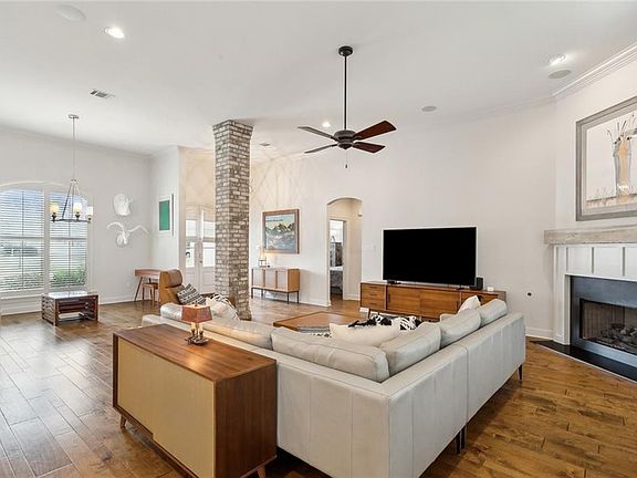 Welcome to 521 Belle Point Loop in Madisonville, Louisiana! This stunning 4-bedroom, 3-bathroom home is packed with high-end upgrades and sits on a prime lot with an unbeatable backyard view. Designed with an open-concept layout, the entryway, living room, sitting and dining areas, and kitchen flow seamlessly together, creating a spacious and inviting atmosphere. The kitchen boasts modern finishes, including white shaker-style cabinets, granite countertops, stainless steel appliances, double ovens, and an elegant backsplash. The living and kitchen areas were recently updated with fresh paint, giving the space a clean and like-new feel. The home features engineered wood flooring in the living and kitchen areas and extends into all bedrooms. The primary suite is thoughtfully separated from the other bedrooms and features dual closets and vanities, a luxurious walk-in shower, and a standalone soaking tub. Step outside to the fully fenced backyard, which overlooks the neighborhood pond and greenspace, ensuring privacy with no future development behind the home—a truly unbeatable view! This home is loaded with premium upgrades, including a whole-home generator for uninterrupted power, an extended driveway for additional parking (to include extra space behind the fence), gutters around the entire home, a whole-home water filtration system, new storage cabinets in the garage, a high-end security system with video surveillance, professionally installed speakers in the living area and back patio, and so much more. This home offers access to the highly sought-after Madisonville school district. Don't miss out on this Belle Pointe beauty and schedule your showing today!
