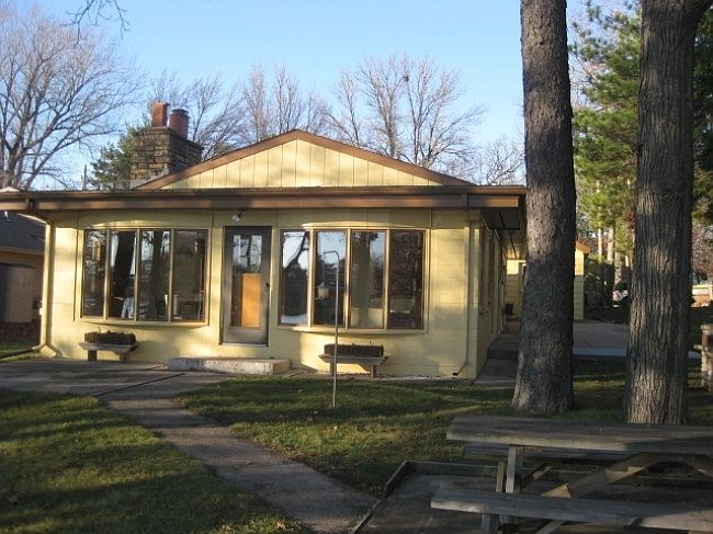 Picturesque house gets off the beaten path on a 78' wide wooded lot on a no-wake portion of Park Lake. Lot is level to the water with sandy shore. Enjoy the 2 large bay windows that light the 24 by 8 sun room. Great views from the living room,sun room, and kitchen dining area. Living room with lannon stone, gas fireplace. Kitchen has light oak cabinets. Bathroom has newer vinyl floor and ceramic surround. Main floor laundry, one half bath. Large closets in all bedrooms.