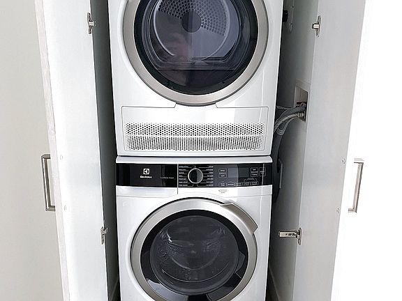 Open concept kitchenWhite cabinetsWindow coveringsIn-suite laundryIn-suite air conditioning
