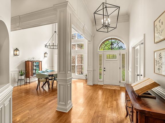 Exceptional custom residence crafted by Eastland Construction Inc. This property showcases window treatments throughout, a kitchen equipped with bespoke maple cabinetry, stone countertops, dual ovens, and modern stainless appliances. Elegant flooring graces the great room, kitchen, and formal dining area, while detailed trim adds character throughout the home. Additional features include a whole-house humidifier for the HVAC system, a water softener, and an irrigation system covering the entire yard. Updated HVAC and mini-split unit installed in 2021, a spacious screened porch, and a remarkable secluded backyard complete with a saltwater inground pool. Conveniently situated just minutes from shopping, dining, airports, and the interstate!