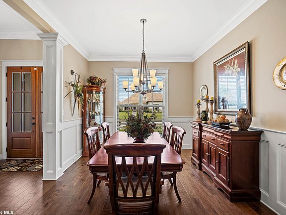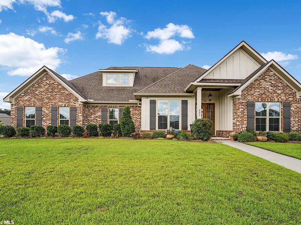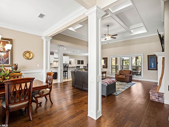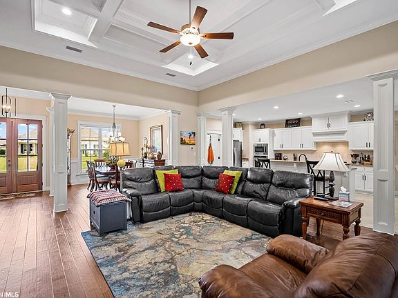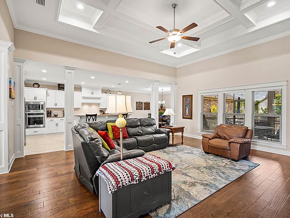 Welcome home to this single story Gold fortified well appointed Truland Hampton floor plan offering 4 bedrooms 3.5 bath house located in Fairhope's desirable Firethorne neighborhood. With over 3000 sq ft, there is plenty of space and showcases designer details throughout! Open concept. Split bedroom plan. Engineered wood floors in living area. Tall ceilings to include 13' coffered ceiling in living room. Living room also features 7' triple windows and a gas log fireplace with brick hearth flanked by matching painted bookcases. Living Room is open to Dining room and airy Kitchen. Eat-in kitchen boasts 8' island, huge walk-in pantry, tile floors, white painted cabinets, granite counters, subway tile backsplash, s/s Kitchen Aid appliances including a 5 burner gas cooktop with custom vent hood, built-in wall oven and microwave. Breakfast area in the kitchen too! Oversized primary bedroom suite with tray ceiling, wood floors, oversized walk-in closet with built-ins, 2 separate bathroom vanities, soaking tub, large glass and tiled shower, private water closet, linen closet. 1 guest bedroom offers an en-suite. The other 2 guest bedroom share a jack and jill bathroom. Loads of storage! Laundry room includes a utility sink and has a nearby drop zone by garage entrance. Side entry double garage with room to add more side parking. Enjoy the screen porch with stained v-groove ceiling and the private extended paver patio with stone fire pit while being surrounded by the lush, beautiful landscaping. Yard is plenty big to add your own pool if desired. Custom built shed. Fenced backyard. Irrigation system. Tankless water heater. Neighborhood amenities include gated outdoor swimming pool, grilling pavilion, playground, basketball and tennis courts and wiffle ball field. Close to hospital, Fairhope schools, and shopping. All information deemed accurate and reliable.