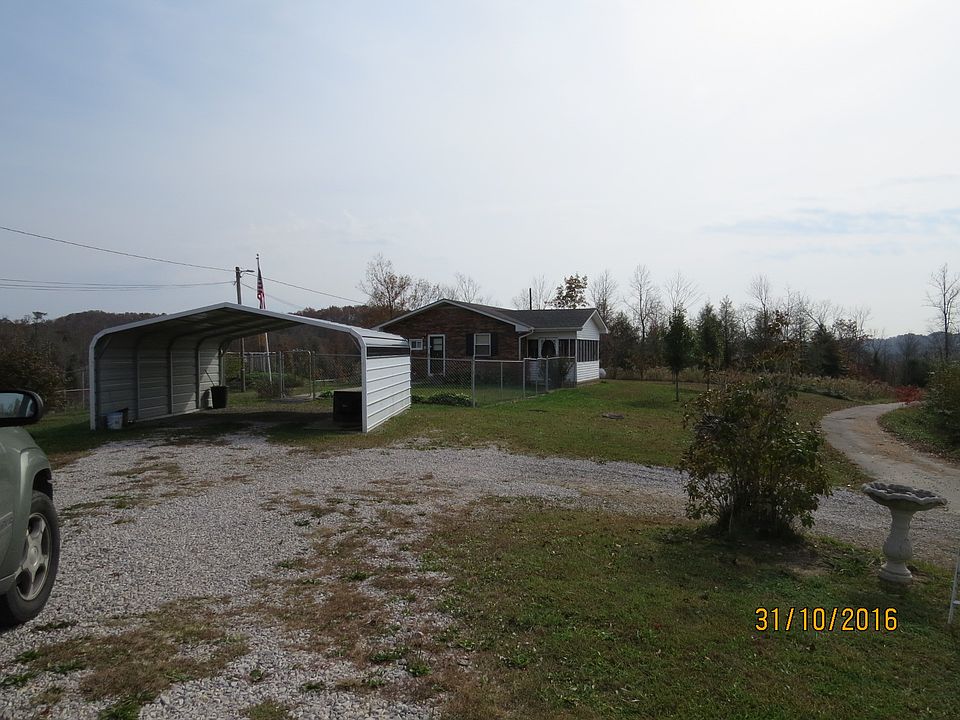 Brick home located at the end of county road, with screened front porch, two bedrooms, one bath. Immediate Possession! Storm shelter. Handi-port carport, storage building. 5 Acres more or less (includes lot across road suitable for mobile home with hook-ups septic, water, electric).
