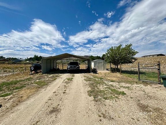 This beautiful home is move in ready! Open concept with a tons of natural lighting and great views! The living room is great sized and is open to the dining room and another room that could be a formal dining room or office or exercise area. The kitchen has a ton of storage, beautiful back splash, stainless steel appliances and small island for prep work. The laundry room has cabinets and leads to the back fenced yard. The property is crossed fenced so it could be used for horses. There is a two car carport and storage shed. The main bedroom is large enough for all your furniture and office space too. Main bathroom has separate walk in shower, soaker tub and two sink vanity. The guest bath has been updated with new vanity. Make your appointment to see this amazing home before it is too late!! Agent is related to seller.