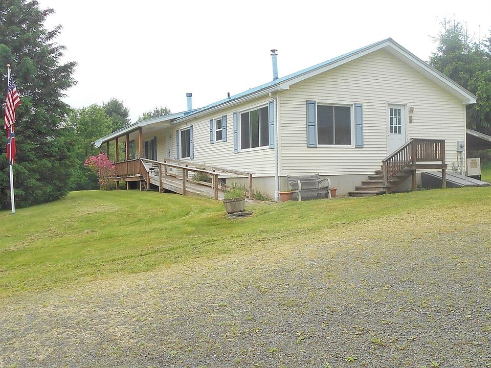 PEACE AND SERENITY IN UPSTATE NY! This 36 acre, 3 bedroom ranch home has everything you've been looking for. From the road you couldn't even tell this home is there. Once you start up the driveway you can see this beauty and the peace it offers. A large kitchen and large living room accentuate this very nice home.  HIGH SPEED INTERNET IS NOW AVAILABLE!   The living room and dining room both have beautiful hardwood floors, and the master bath has a JACUZZI TUB! Walk the wraparound deck and see the stunning fruit trees and the surrounding woods. A large pond, filled with bass, greets you as you enter this paradise. The living room has a fireplace to cuddle up to on those winter nights. IT EVEN HAS A GUEST HOUSE! An automatic generator is there for your protection if the electric should go out. MAKE SURE YOU SEE THIS ONE!