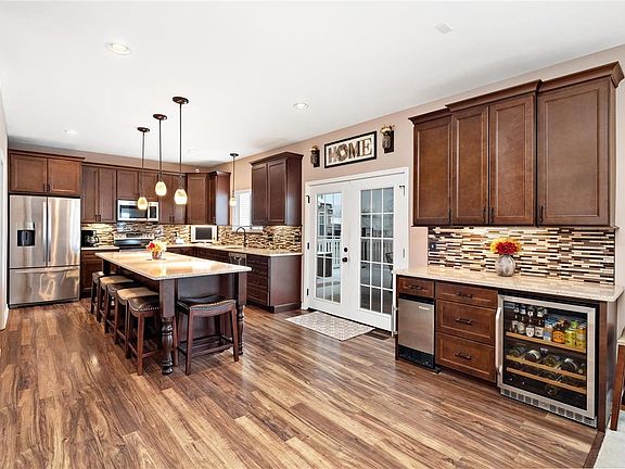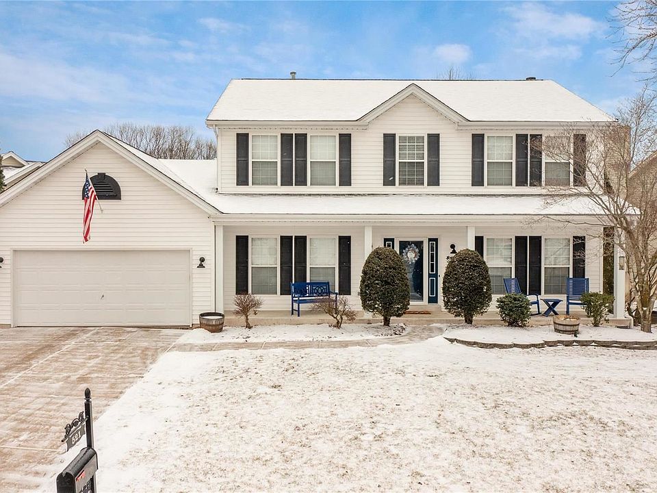 Affordable luxury awaits in this stunning two story in Huntleigh Meadows conveniently located right off Highway 364/Jungs Station. You'll be greeted by a 2 story entry foyer and T-staircase with living room and dining room on each side. Your family room with gas fireplace and bay window makes entertaining a breeze at it is wide open to your dream kitchen! Kitchen was completely renovated in 2017 and features 10 ft center island, quartz countertops, 42 in custom cabinetry, glass tile backsplash, stainless steel appliances, bar area with ice maker and beverage cooler and French doors to your covered deck! Retreat upstairs to your vaulted master suite with luxury bath with ceramic tile surround, dual sinks, large soaking tub, water closet and walk in closet. Newly finished in 2020, your walk out lower level is sure to be another entertainment hub! Additional features include high efficiency furnace, new A/C (2021), newer roof (2017) newer laminate flooring (2017) and 3 car tandem garage