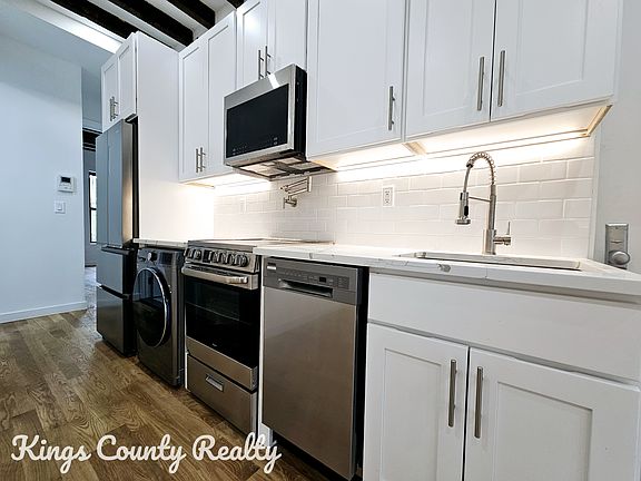 ALL VIEWINGS, INCLUDING OPEN HOUSES, ARE BY APPOINTMENT ONLY Renovated 2-bed 2-bath with home office apartment spanning over 1000sq ft in a beautiful Brownstone Everything is brand new, full gut renovation Features: -Stainless steel appliances -Hardwood floors throughout --Central air -In unit washer dryer combo -Rainfall shower heads -Dishwasher -Anti-fog, smart medicine cabinet -Open concept living /dining area -No broker fee -Video doorman -Lots of sunlight -Master bed has en suite full bathroom Superclose to all shopping and transportation. Sonora restaurant & bar, September coffee & pastry shop, Zam Zam halal, Natural valley market all close by! Amazing park (Saratoga Park) 2 blocks away. A-C Subway line is a few blocks away. -- Easy application process -- 40x rent | 700+ Credit Score -- Guarantors are accepted Pets Allowed case by case