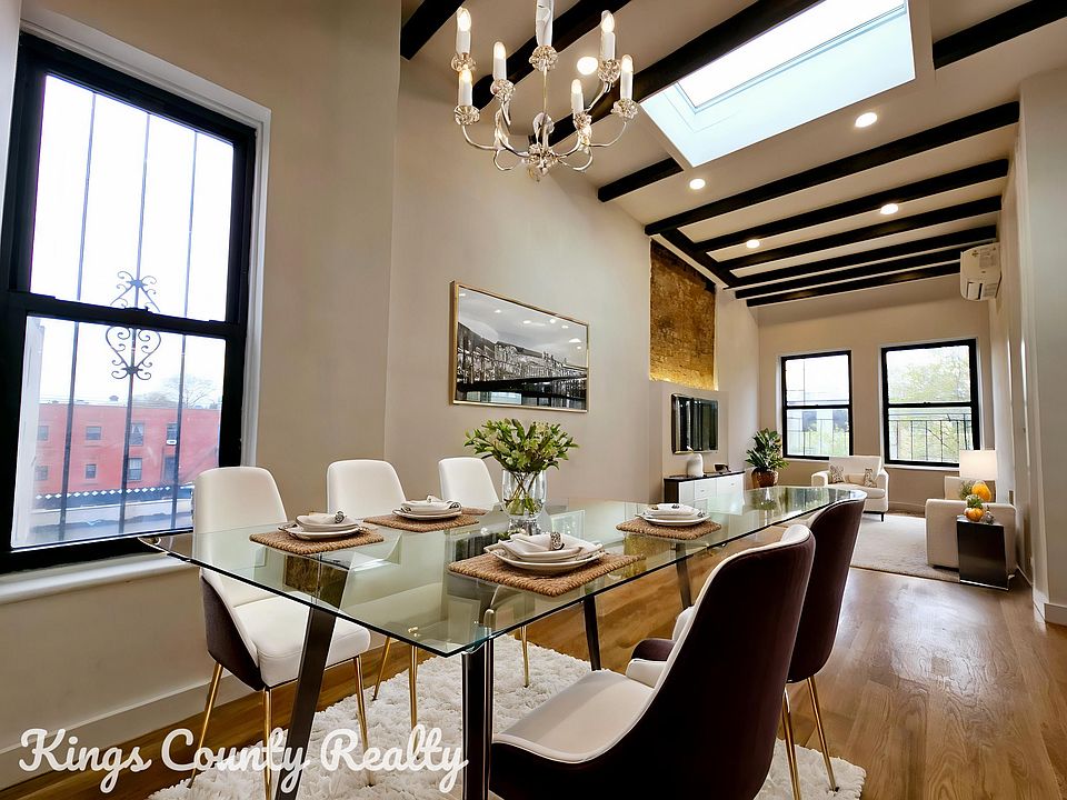 ALL VIEWINGS, INCLUDING OPEN HOUSES, ARE BY APPOINTMENT ONLY Very sunny Top floor Renovated 3-bed 2-bath apartment with skylights spanning over 1000sq ft in a beautiful Brownstone Everything is brand new, full gut renovation Features: -Stainless steel appliances -Hardwood floors throughout -Skylights --Central air -In unit washer dryer combo -Rainfall shower heads -Dishwasher -Anti-fog, smart medicine cabinet -Open concept living /dining area -No broker fee -Video doorman -Lots of sunlight -Master bed has en suite full bathroom Superclose to all shopping and transportation. Sonora restaurant & bar, September coffee & pastry shop, Zam Zam halal, Natural valley market all close by! Amazing park (Saratoga Park) 2 blocks away. A-C Subway line is a few blocks away. -- Easy application process -- 40x rent | 700+ Credit Score -- Guarantors are accepted Pets Allowed case by case