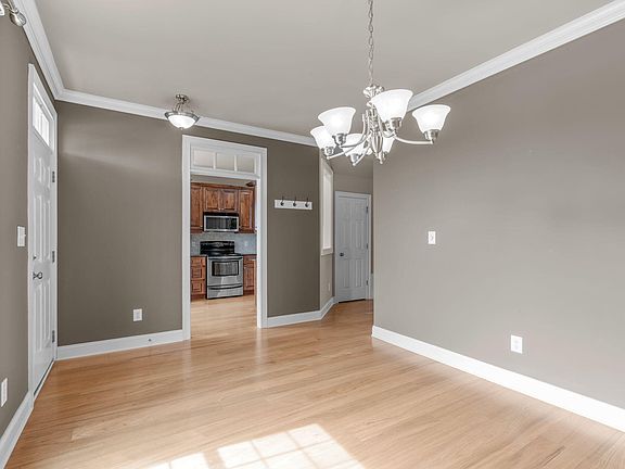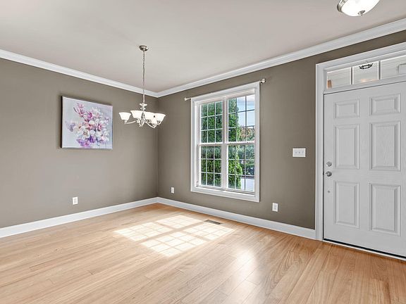 This classically styled townhome in the pool community of Lakestone Village is well maintained and full of upgrades. The covered front porch welcomes you into a well appointed space with lovely hardwood floors, crown molding, and a 2 tone, neutral color palette that will enhance a variety of design aesthetics. The bright kitchen is complete with stainless steel appliances, recessed lighting, solid surface range, granite countertops, tile backsplash, pantry, breakfast nook, and crown molding on the ceiling and cabinets. The formal dining room is timelessly elegant with neutral color palette, bright window to bathe the space in light, and crown molding. Moving into the family room, the sweeping views to the exposed staircase, hallway, and loft area are anchored by a gas log fireplace with molding topped mantle and more molding topped windows to let in more light. The space is sized to accommodate a variety of seating arrangements to suite your design style. The private retreat that is the main floor owner's suite is evident in the French Door patio access, tray ceiling with crown molding, and walk-in-closet. In the en-suite, luxury abounds in the large walk in, glass enclosed, tiled shower and dual sink granite topped vanity. Moving up the wrought iron spindled open staircase, you get views of the family room and the cozy loft above overlooking the space. There are also 2 more nicely sized bedrooms that share access to a bright bathroom with a gleaming white dual sink vanity and cabinets. The loft is perfect for a reading nook, play space, or home office. The laundry room is situated downstairs for convenience and more storage and a tankless water heater for efficient hot water delivery while saving space. Outside, there is patio space for relaxing or entertaining and a detached 1 car garage with 2 dedicated parking spaces. The Lakestone Community is nicely situated on the east side of Fuquay-Varina, approximately ½ mile from US-401, 2 miles to downtown, and minutes from boutique and retail shopping, dining, and much more.
