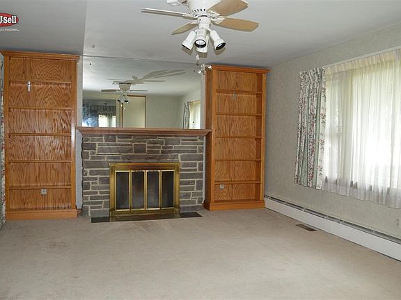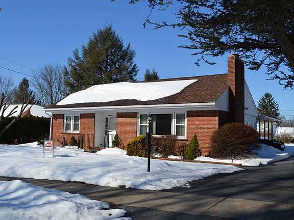 Attractive 2 bedroom, 2 bath brick ranch offers a large living room with wood burning fireplace and built-in shelves, dining room with chair rail and built-in hutch, den/office, and a three season room. The tiled walk-in shower and first-floor laundry are some of the amenities you will enjoy. Plenty of closet space, a full unfinished basement, and a detached 1-car garage, too. Handicap accessible. Central Air! Enjoy the convenient location, too!