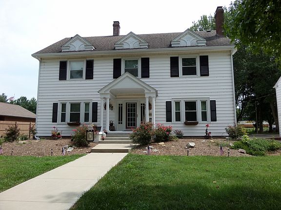 Priced below homes Appraised Value! Make us Move! Classic Colonial home with numerous upgrades. new windows, house rewired, remodeled kitchen, bathrooms, master suite. Great utilities. All Window treatments stay with the house. Plus two living room couches and chair. 2,700 Sq ft. living. 1000 Sq ft unfinished basement and large attic. 3 car detached garage(heated) with storage sheds. Also parking lot and concrete pad on south side of property. New concrete driveway with new patio areas with fire pit. House has 3 bedrooms 2 baths. 1 bedroom is a master suite with sitting room and a walk in closet. Elfa brand built in closets, Shoe stand along floor, Stackable Washer/dryer. 2 fire places (wood and gas log) Hardwoods throughout house except for carpet in tv room and nursery/bedroom. Custom cabinets in kitchen, granite countertops, glass tile back splash, stainless steel appliances. Generac full house backup generator!