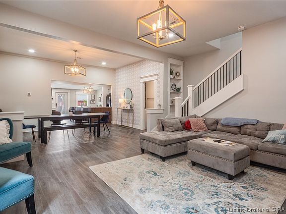 Welcome home to 521 E. Oak st. Located in the heart of downtown New Albany this beautifully remodeled home features a open floor plan, custom finishes, and an amazing entertaining space. You will love the large kitchen with tile backsplash, granite countertops, floor to ceiling tile in the bathroom and a amazing covered front porch. The location is perfect and only a couple blocks from restaurants, the Ohio river, and everything downtown New Albany has to offer. The backyard is perfect for entertaining featuring a covered open garage, large fire pit, and completely fenced in. This was used as a airbnb so furniture is negotiable, and if you are looking for a income producing property this would be a perfect match. Schedule now to make this dream home your reality.