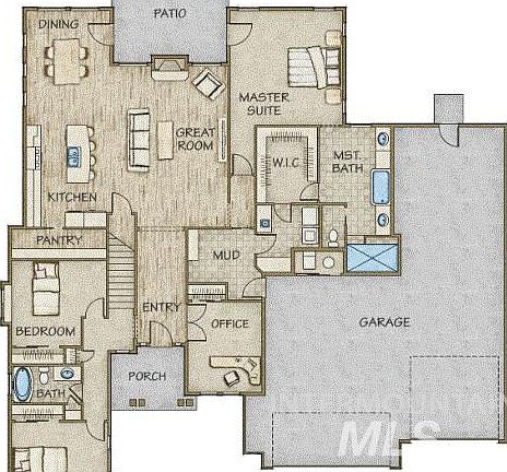 - Bath-Master, Bed-Master Main Level, Split Bedroom, Den/Office, Great Room, Rec/Bonus, Double Vanity, Central Vacuum Plumbed, Walk-In Closet(s), Pantry, Kitchen Island, Number of Baths Main Level: 2, Number of Baths Upper Level: 1, Bonus Room Size: 28x25, Bonus Room Level: Upper