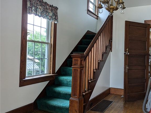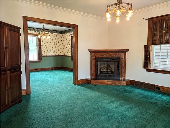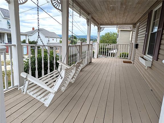 Situated on a 60x120 lot in Mt. Pleasant Borough, this 3 bedroom 2 1/2 bath home has so much to offer! Notice the great view of the mountains as you cross over the gazebo style front porch. The front entry leads you through craftsman style French doors to a living room with a gas fireplace and a 5 ft entry to the formal dining room where a swinging door welcomes you to the fully equipped kitchen and the entertainment room that offers a gas fireplace, a bar and half bath. Additional features include a 2nd floor full bath with a jet tub, an enclosed outdoor space fitted with a wet bar and a TV and stereo storage cabinet. Zoned stereo speakers are wired throughout the interior and outdoor spaces. The home has tiered decking and an attached garage with a new overhead door and is accessible from the basement and the back patio.
