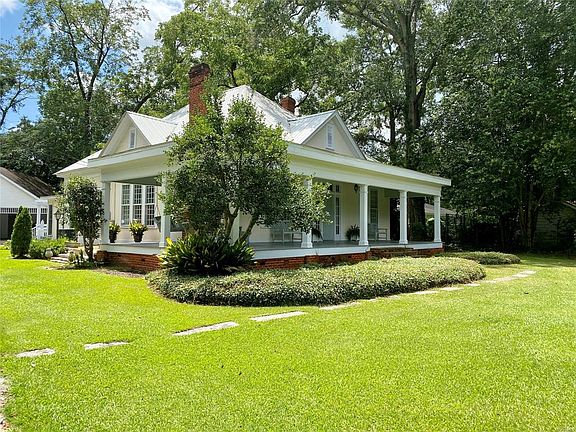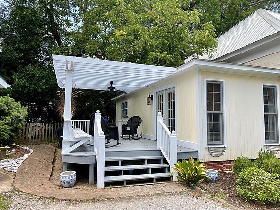 Storybook charm and elegance are uniquely combined to make this home totally irresistible! Built around 1890, this house is nestled toward the back of a very large landscaped lot in a lovely part of town. The owners have updated it but have managed to maintain all of the wonderful features that give it the appeal of a vintage cottage. A huge wraparound porch offers a respite for rocking and swinging the hours away. The beautiful windows throughout are a standout and offer tons of natural light. High ceilings and lovely moldings are in all of the rooms. The living room has a gas log fireplace with a new mantle with Travertine marble surround. The kitchen has been updated with all new stainless appliances, including a gas stove. Part of the cabinetry in the kitchen is original and looks like an antique piece. The handpainted Delft-style ceramic tiles depict pictures of the home and the homeowner's pets. All three bedrooms are large and beautiful. The custom draperies in the bedrooms convey. The washer and dryer are conveniently located in the master walk-in closet. In the rear, there is a lovely deck with a pergola. A detached double carport has two large storage rooms as well as pull-down stairs to a storage area above. A quaint little separate building makes a perfect office, studio or playhouse.