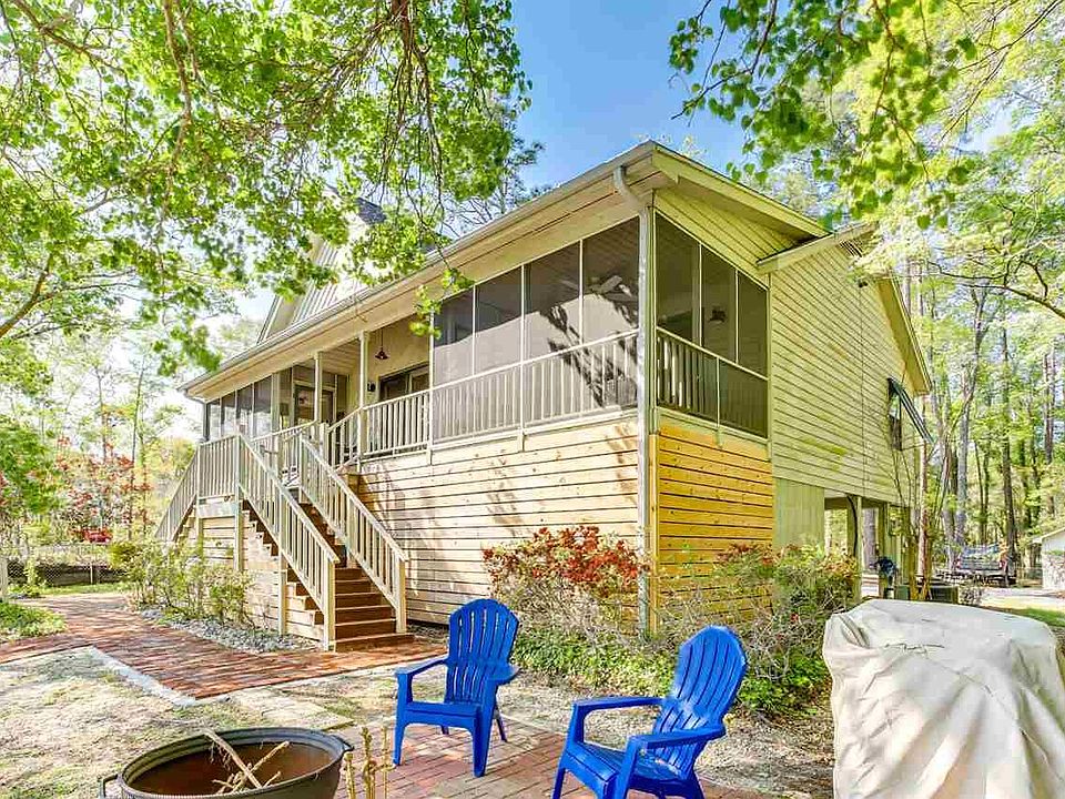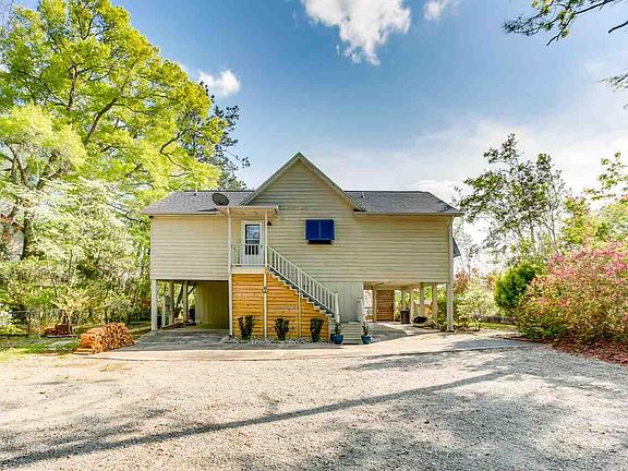Recently remodeled three bedroom three bath waterfront offering. This home provides peace of mind with nearly new features and excellent river views and access. Open greatroom/kitchen concept with vaulted ceilings. Master has walk in closet, en-suite bath with shower system and its own screened porch. Guest rooms share a bath and one even features another screened porch with river views. Downstairs recreation room has plenty of room for many uses and a full bath as well as a large storage room. Carport parking underneath with tool nook and detached heated and air conditioned she shed or man cave. Enjoy your favorite watersports on this long deep water river. Black river meets four other rivers and Winyah Bay in Historic Georgetown.