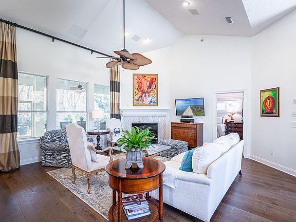 Move right into this immaculately maintained 1-level home home with a coastal flair in the sought after Woodlands n'hood on a cul-de-sac. Many upgrades in the last 12 months: NEW ROOF, 9'' wide white oak floors thruout all living areas & Master, fresh paint, Quartzite counters in kitchen, dining & laundry. Perfect for entertaining, this home boasts a chef's kit w/stainless appliances inc gas stove, vaulted fireside grand room w/marble gas fireplace, dining & 32' screened lanai (plumbed for gas) overlooking a professionally landscaped private yard with trickling fountain! Split bedrooms & a private guest suite. Spacious master w/luxurious bath spa-steeping tub, oversized shower, & separate his & her closets. Music wired throughout + landscape lighting, irrigation, & mature citrus trees!