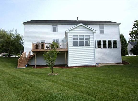 New Price $$$ Room, room, and more room.Over 4500 SF two story in a fantastic location, right off Feise Road, close to Hwys 364, 64, & 70. COMMUNITY POOL. Main level has 9??? ceilings, new carpet & gorgeous wood floors & is freshly painted in neutral shades that will compliment any d??cor.Kitchen has beautiful Hickory cabinets & granite countertops with a large center island. Sun pours in from the sunroom which overlooks the lake w/fountain. Enjoy watching the wild life or barbeques from the composite deck off the sunroom.You will love this view.Home features combination kitchen/breakfast room, separate dining, living room, office, great room, sunroom, and laundry.2nd floor has a huge rec room and 4 large bedrooms.All have walk in closets. Master suite has a huge closet & soaking tub & shower, double sinks, upgraded lighting and flooring. 3 car extended finished garage, w/o bsmt, Pella windows, crown molding, sprinkler system, security system, newer roof & upgraded dual HVAC.