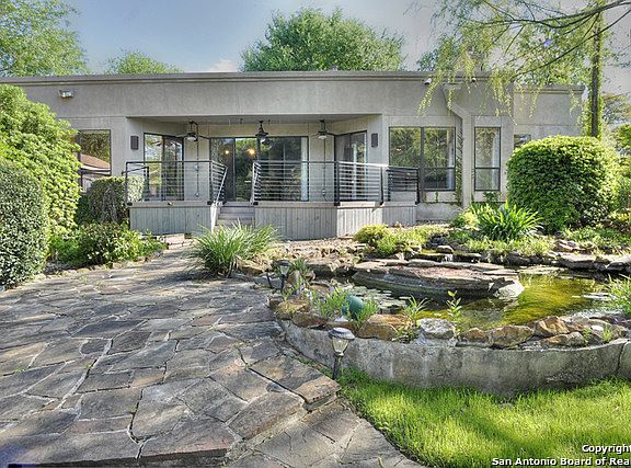 A rare find in this custom built Terrell Hills home surrounded by million dollar plus homes on a gorgeous, oversized treed lot. House has a single living area, open floor plan with a wall of windows, French doors overlooking outdoor entertaining area plus fabulous yard with Koi pond/ recycling filter, plus large storage building plus separate workshop with electricity/ water. Each bedroom has its own bath. Two bedrooms have separate sitting room or a study, nursery or exercise rooms. Home has many flexible features. Located in Northeast school district.