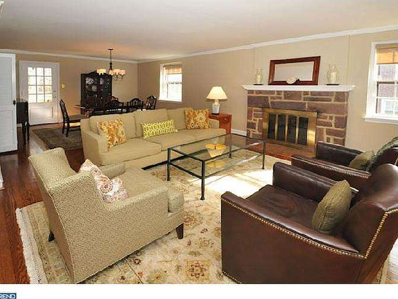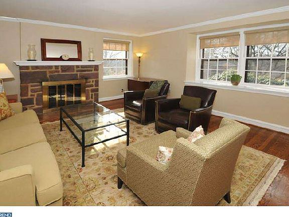 Beautiful stone cape with versatile floor plan in highly sought after Twickenham Village. This home has a slate walkway with a welcoming foyer and hardwood floors throughout. The living room offers a stone woodburning fireplace, deep window sills, crown molding and it opens up into the formal Dining room. The dining room features deep window sills, crown molding and an exit to the outside deck. The spacious eat in kitchen offers, tons of cabinet and counter space, deep stainless steel sink with new fixtures and an additional exit to large deck. The master bedroom is located on the main floor. It has two closets, and a spectacular renovated bathroom. The master bath offers gorgeous Carrara marble tile, marble and glass tile inserts, double vanity with quartz counter top, and frameless glass shower with top-of-the-line fixtures. The second bedroom is currently being used as a den and features wainscoting and crown molding. An updated powder room is conveniently located on the first floor. The spacious second floor offers two large bedrooms a full bath, and generous closet space. The basement is finished on one side. This is currently being used as a rec/play room. The other side is the laundry room/utility room perfect for storage. The laundry room has an exit to the oversized attached garage that is double deep with a new automatic door. The large private backyard offers a spacious deck and paver patio, ideal for entertaining . Great location! Minutes to train, shopping, restaurants Route 309, and PA Turnpike. It is also an easy commute into center city.