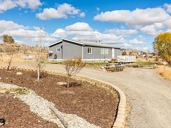 Well maintained home at 1248-SF with 3 bedrooms and 2 bathrooms with central air. Kitchen was remodeled with beautiful finishes and open concept. The living room is spacious with view of the rubies and a pellet stove. The master bedroom is large with an updated bathroom done. Sits on 1.26 Acres with a fully fenced back yard, circle driveway, maintained yard with full sprinkler and drip system. The exterior of the home has a front deck, covered back deck, 17x 18 pole barn and a shed.