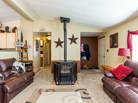 - Interior Features: Flooring- Vinyl, Flooring- Carpet, Flooring- Tile, Alarm/Security System, Vaulted Ceilings, Pellet Stove, Ceiling Fan(s), Smoke Detectors, Blinds