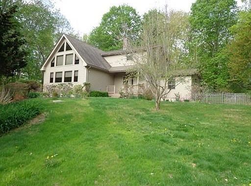 Fantastic Contemporary nestled back on 1.3 acres of land has so much to offer. First flr features wide open flr plan w/ renovated kitchen w/ brick hearth & pellet stove flue, eat in dining area, laundry rm, massive, sun drenched living rm w/ vaulted ceilings, gleaming hdwd flrs & amazing windows, dining rm area features sliders to deck w/ private backyard- a nice oasis, spacious master bdrm & 3/4 guest bath. Second flr features two generous sized bedrooms w/ newer carpeting, one with a great walk in closet & tandem full bath. This property has many upgrades throughout: Renovated kitchen (2011), beautiful cabinetry, granite c tops, ss appliances, newer flooring, ctr island. Freshly painted throughout, newly carpeting(2015), refinished hdwd flooring, newly replaced Pella windows (larger living rm) (2010), furnace(2008) vinyl sided (2009), roof (2005), washer & dryer (2013)(seller states). Nice sized basement for potential living space w/ brick hearth fireplace a plus!