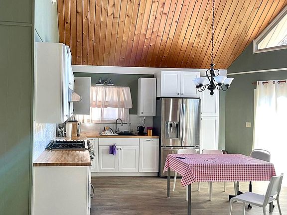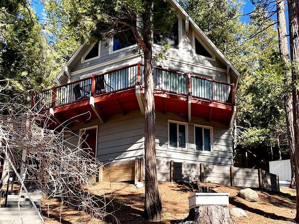This is a unique stylish high-ceiling home with lake rights. Floor to Ceiling windows for the front of the house. Very nice lighting. Upgraded kitchen and bathrooms. Newly updated deck along front and one side of the house. Two bedrooms plus loft to be an optional third bedroom. Large family/game room downstairs. One full bathroom downstairs. New high efficiency furnace. A concrete driveway of Grass Valley and an access road behind for near level entry. Close to trails. 7min drive to Lake Arrowhead Village. Tenant is responsible for all utilities: Gas, Water, Sewer, Electricity, trash. No smoking, please. Extra rent for pets. Tenant has to pick up after their pets. $45/adult credit check fee, nonrefundable. A refrigerator and Washer & Dryer included.