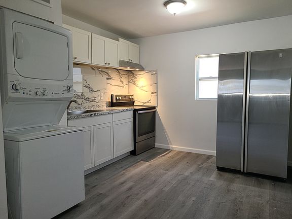 Beautifully renovated 2 bedroom, 1 bathroom apartment. This unit is located on the ground level and features LVP flooring throughout, tile in the bathroom, updated kitchen with new cabinets, stainless appliances, new energy efficient features and windows. The bedrooms are off a central hall shared with the bathroom and utility closet. The bathroom features lovely tile work for a sleek and modern feel. The living room and kitchen feature dual entry and is open and flowing. In the kitchen is also a washer and dryer connection for a stackable unit. $75 application fee, per adult occupant. Pets negotiable. Tenants responsible for electricity, water, and cable/internet.