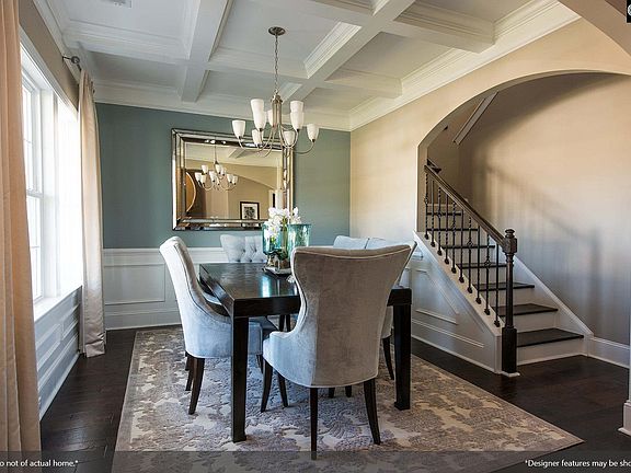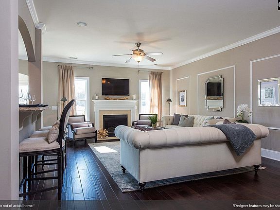 The Victor is a Master down, 5 bedroom, 3.5 bathroom home loaded with upscale features and located on a lot that backs up to wooded area. The main level is lined with hardwood flooring with 5" planks,crown molding and a stained open tread staircase with metal balusters. The dining room has a coffered ceiling and judges paneling on the walls. The gourmet kitchen is open to the family room and is sure to impress with a gourmet appliance package that includes a gas cooktop, built in convection wall oven with a built in microwave above it, clean white cabinets and quartz counter tops. The large kitchen island overlooks the family room that has a gas fireplace. The 1st floor master bedroom features a box ceiling, a large walk-in closet and separate tiled soaking tub and shower. Upstairs there are four additional bedrooms, two full baths and a large media room. Relax on the covered rear porch overlooking your fenced in back yard. Full yard irrigation will keep your lawn luscious and green, front yard maintenance is taken care of so you can spend more time with family and friends. Curb appeal is important and this home looks great with Bessemer gray brick front and durable cement fiber siding.