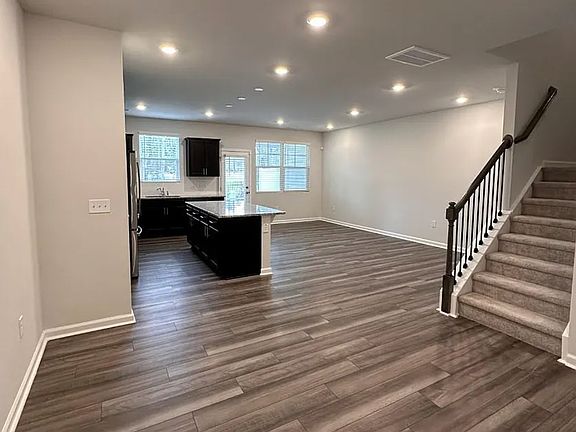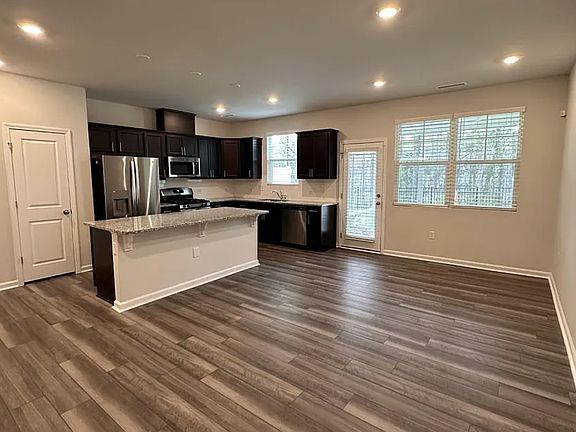 Completely open layout on the first floor with luxurious LVP floors and a lovely kitchen. Plenty of cabinet space with stainless steel appliances (gas stove!) that leads to the screened in back porch.