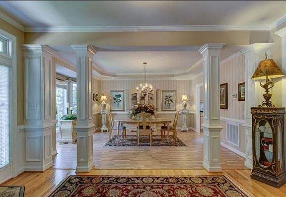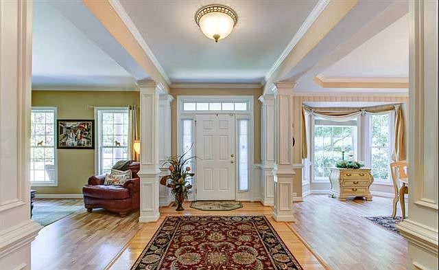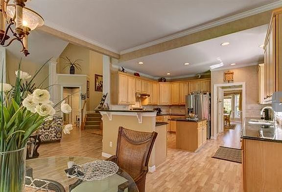 Let the Sunshine In! Bright open floor plan! Walk to shopping, restaurants. Master BR on Main level, Two story cathedral ceilings, palladian windows with view of private wooded back yard. Renovated & Gorgeous gourmet kitchen/butlers pantry, formal dining, 22ft. bonus room, Unique office loft, tranquil community pond, gazebo, walking trails, community pool, New roof 2013, new AC/furnace & H2O 2014.