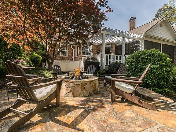 RENOVATED fairway home in exclusive GATED "Southern Living" Community. Offers 4 BR's, 3.5 baths & gracious flowing floor plan with pristine hardwoods. Foyer opens to living room & den with inviting hearth & direct access to the screened porch & pergola. Kitchen with granite counters, warm wood cabinetry, opens to sunny breakfast bay. Owner suite with renovated bath. Newly remodeled guest bath. WALK-OUT LEVEL WITH ELEVATOR can be game room or 4th BR suite, with private bath, delightful covered veranda, patio and FIRE PIT with gas logs. FENCED BACK YARD with view of the Jones Course 4th fairway. "RING DOORBELL" security, front & back. OPTIONAL CLUB MEMBERSHIP amenities include golf, tennis, pickleball, swimming, dining, event facilities & so much more!