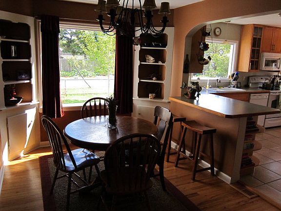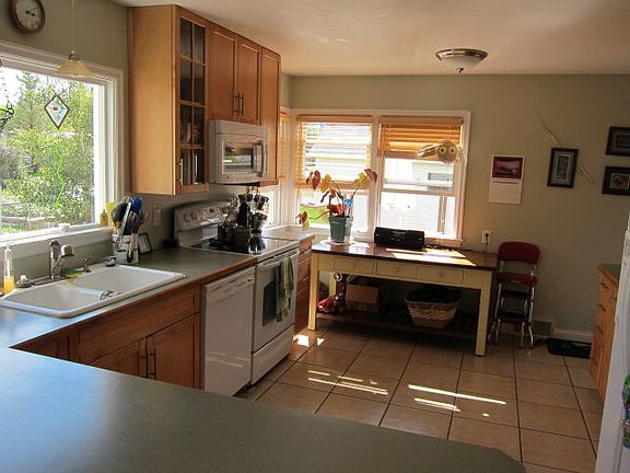 Beautiful family home in a great neighborhood! Like new interior with many upgrades. Energy efficient heating and air conditioning with a water source heat pump, fireplace upstairs and a wood stove in the basement. Two bedrooms and a bathroom upstairs. Fully finished basement with two bedrooms, one bathroom, living room, huge laundry room with a bonus work bench, large walk-in pantry and three egress windows. Two car insulated, detached garage with overhead storage accessed by a pull-down ladder and automatic openers. Covered patio behind garage for outdoor cooking in inclement weather. New redwood porch in front and deck in back with built-in benches and planters. Bonus detached oversized one-car garage in back with power, garage door and work benches. Lawn in front and back yards. Backyard fully fenced with chain link, three-bay covered storage, garden area and beautiful landscaping. Well serves both heat pump and yard irrigation. This home has it all, take a look today!