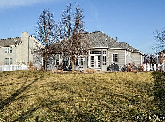 Just what you're looking for... a wide open floorplan with vaulted ceilings and light and bright space, windows with transoms looking to the back yard that backs to the Forest Preserve. The home boasts gleaming hardwood flooring from the front door throughout the family, dining, eating area and kitchen. The kitchen that makes you say "Wow" includes an island, maple cabinets with crown molding, stylish backsplash and huge pantry. The formal dining room will nicely accommodate your guests at parties. The private master suite with tray ceiling and luxe bath includes double bowl vanity, whirlpool tub, separate shower and huge walk-in closet. The full basement with a bath rough-in offers plenty of options for storage and adding more living space! Paver patio and fenced in backyard-great for entertaining. Nice playground in subdivision and walking path that connects to adjacent Forest Preserve. This is it...Welcome Home!