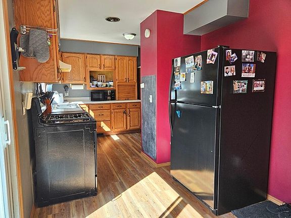 Welcome home! This cozy city abode features a living room with newly refinished wood flooring and large thermal windows that provide an abundance of natural light. The kitchen has oak cabinets and plenty of built-in storage. An adjoining dining area with patio doors leads to a delightful deck overlooking the spacious and scenic fenced in back yard. Two bedrooms and a full bath complete the main level. A third bedroom or rec room with egress window is located in the lower level, along with laundry and unfinished storage space. Recent updates include furnace (2023), luxury vinyl plank flooring and paint. Along with thermal windows and doors, the kitchen and bathroom appear to have been refreshed in recent years as well. A blacktop driveway leads to the 2-car detached garage that has a shed off the side to provide ample storage for vehicles and outdoor gear. Parks, downtown amenities and shopping are all nearby. Kitchen and laundry appliances are included.