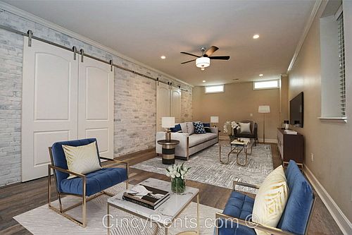Beautifully remodeled one bedroom apartment in historic Prospect Hill. This 1400sqft apartment has a private entrance and courtyard. Spacious living room with exposed brick, accent wall and updated fixtures. Gourmet kitchen with stainless steal appliances. Amazing bedroom with large closet and sliding glass doors that lead to flagstone patio. Large bathroom with clawfoot tub, new vanity with granite counter. Spiral staircase takes you into lower level bonus room great for entertaining or home office. Other amenities include in unit laundry, central heating and air conditioning, nine foot ceilings, fenced private courtyard with professional landscaping and updated fixtures throughout. Great location near OTR, Pendleton District and easy access to all major highways. This property is a MUST see! Call for your private showing today!