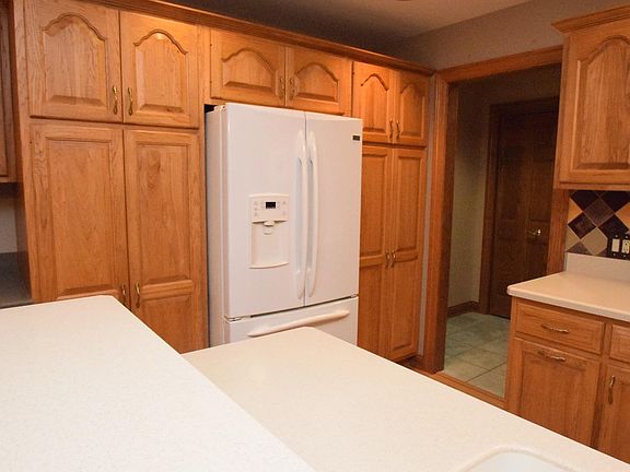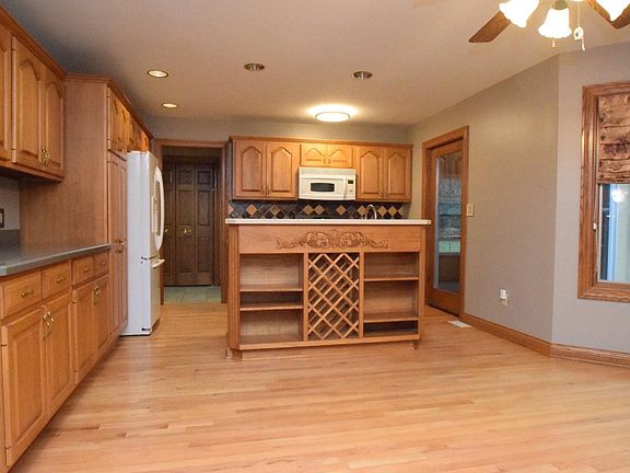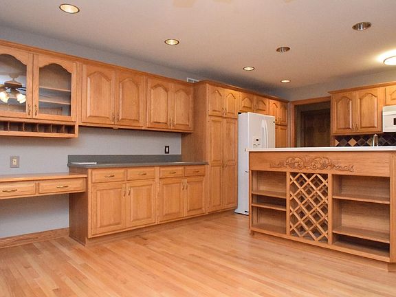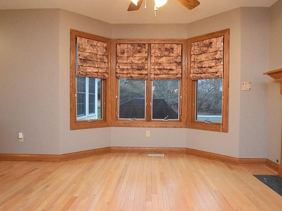 What doesn't this house have? 1.42 acres, spacious three seasons room overlooking the private back yard, large deck with built-in benches and trellis, 30 white pine trees, expanded driveway for easy turn around and extra cars, three-car garage, hardwood floors, massive tiled foyer, oak stairs going upstairs/down to the basement, six-panel oak doors, wide trim, double-sided fireplace in the kitchen/living room, built-in Amish made cabinetry with glass front on either side of the fireplace, built-in kitchen island with wine rack and bookshelves, pleated cellular shades, jetted tub with window and interior blinds for privacy, four bathrooms, four bedrooms, six-zone sprinkler system, electric air cleaner on updated furnace, office with built-in shelves, whole house generator, bar/kitchenette in basement with microwave, sink, and wine fridge, Kinetico water softener, built-in basement shelving with surround speakers and receiver, sewing room with built-in cabinets and dresser. Much more!