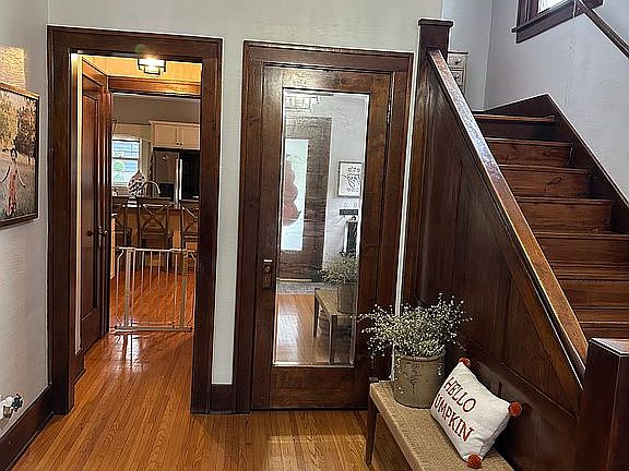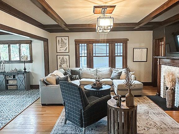 Gorgeous historical home, updated and spacious! Come into a beautiful foyer with 9-foot ceilings and hardwood flooring throughout the home. French doors lead to a large inviting living room with stunning coffered ceilings. Additional glass doors open to a formal dining room with continued coffered ceilings and plenty of windows to provide an amazing space. The eat-in kitchen features solid surface Corian countertops, a serving bar, a pantry, lots of cabinets, and brand-new appliances. The second floor features a large master bedroom with a generous closet and newly remodeled half bath, in addition to two additional bedrooms, a large linen closet, bonus space, and a full bath. The third-floor attic provides a huge storage space or can be easily remodeled for an additional living area. The lower level contains a large family room, additional bedroom, ¾ bath, and laundry room. Spacious lot with fenced-in backyard which includes a separate rubber mulched space and playset. Attached garage (single stall) and detached three-stall garage. Walking distance to park, duck pond, and elementary school. A short walk to downtown and Meridian Bridge Plaza. Don’t miss this amazing home! Electric heat pump 2009, roof 2011, windows 2016, leaf gutters 2016, new light fixtures, bathrooms remodeled in 2018/2019, second-floor interior doors 2019, concrete patio 2021, and so much more!
