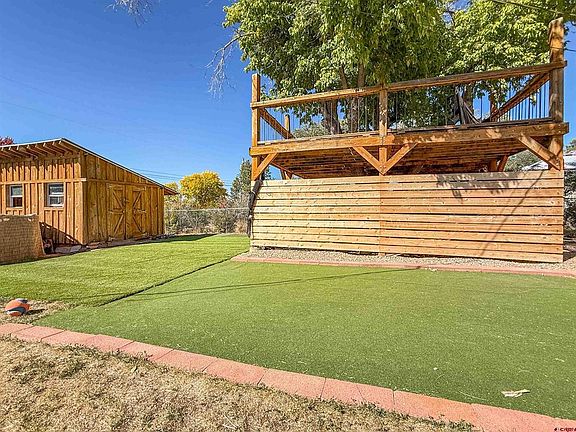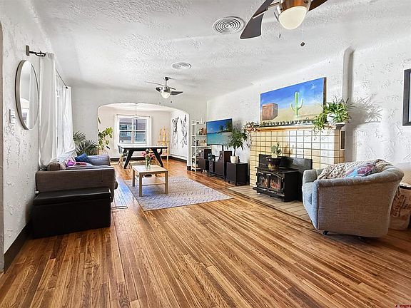 Step inside this warm and inviting ranch-style home that blends classic character with plenty of living space — just blocks from Main Street shopping and local schools! The main level offers an open living and dining area with hardwood floors, abundant natural light, and a cozy fireplace ready to be revived for chilly winter evenings. The kitchen features generous cabinet space and an easy layout that’s perfect for family meals or entertaining. Downstairs, the finished basement expands your options with two additional bedrooms, a second bath, a comfortable second living area, a functional sauna, and a large storage room. Outside, unwind on the large treehouse-style deck built around a mature shade tree, or tinker in the oversized shed that could double as a workshop. Raised garden beds and a circular driveway add even more appeal. With its stucco exterior in excellent condition, forced-air heat, and a convenient .245-acre lot, this home is move-in ready and full of potential. Don’t miss your chance to own a spacious home in one of Cortez’s most convenient locations!