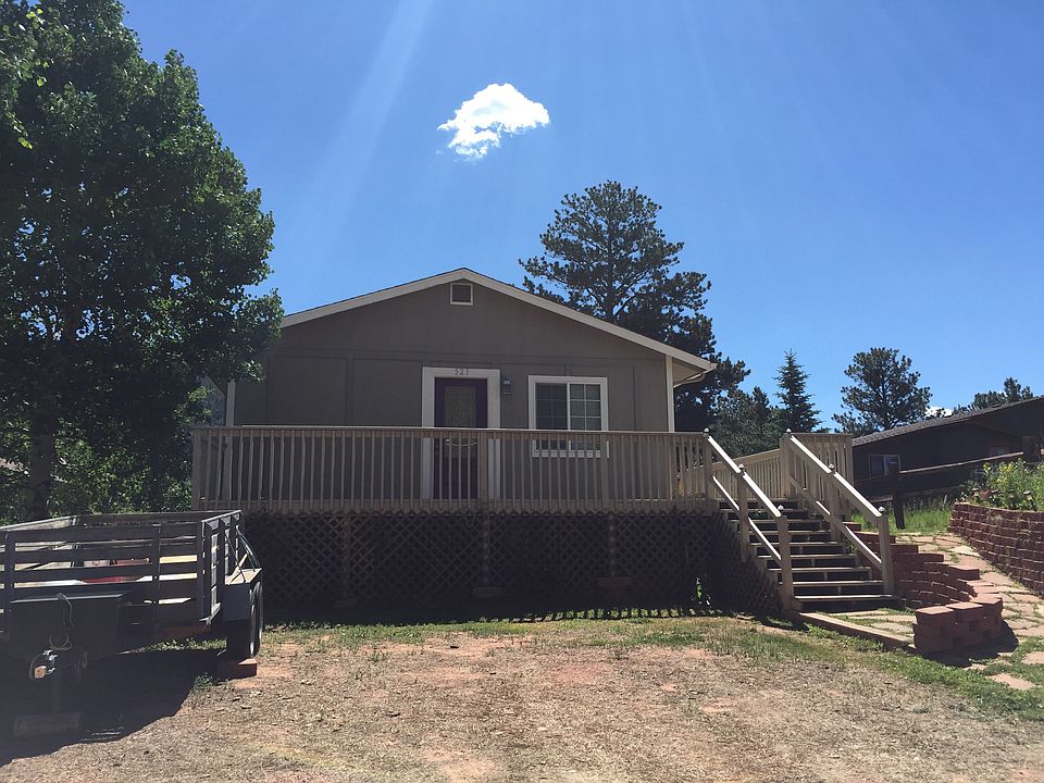 Great in town location. Walk to everything in Woodland Park. Great views of Pikes Peak. Kitchen newly updated, new laminate flooring upstairs, Fresh paint, fenced back yard.