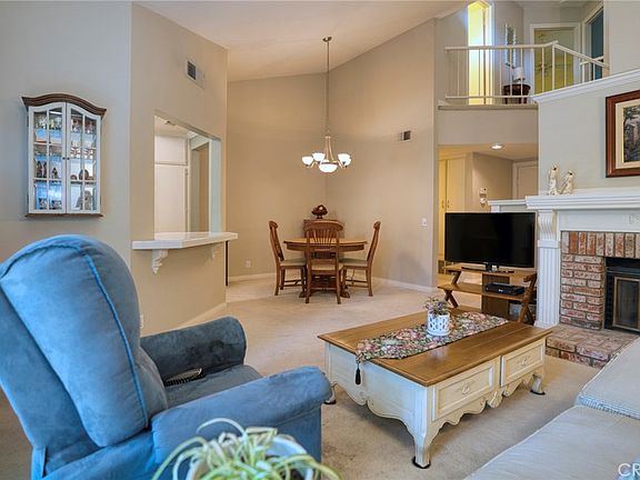 Welcome home to this charming two-bedroom condo in the lovely community of Stanford Court. Situated towards the rear of the property, this home offers a roomy front patio on which to entertain or simply enjoy quiet mornings and evenings. As you enter the residence, lofty ceilings lend themselves to an open and airy feeling; a main living room, light and bright kitchen, dining area and powder room are on the main level. The attached two-car garage with direct access is also where laundry connections are located, including a newer hot water heater and storage cabinets. Upstairs, you'll find the primary suite with full bathroom, adjacent vanity and dressing area, and a second bedroom -- also perfect for office use. Ample closet space throughout, new dual-pane windows, thoughtfully designed custom second bedroom storage solutions, and a cozy fireplace with beautiful mantel round out the home's offerings. Centrally located to the 91 and 5 freeways, parks, golfing, retail and more. A sought-after community that's a true Anaheim gem!
