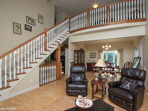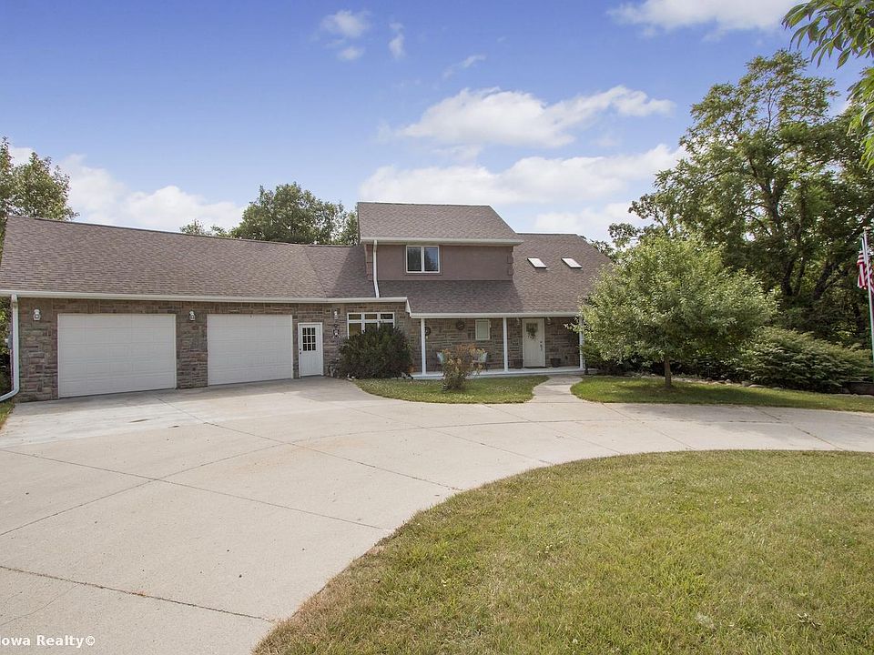 Come check out this amazing acreage with a paved drive in St. Charles that has a Home Warranty and get close to nature at the edge of town. This 1.5 story has expansive windows and a GRAND STAIRCASE only 20 minutes from Jordan Creek area . It is loaded with benefits, 30 x 30 oversized garage with cabinet storage on two sides, Master Bed and laundry on main floor, lawn mower storage in walk out basement, sunroom to see and enjoy nature in the comfort of your home. Very large bedrooms upstairs, wet bar in the finished walk out basement with a small patio that you can relax or entertain guests. This house has the best of both worlds, peaceful nature setting at the edge of a small town living within minutes of the larger towns.